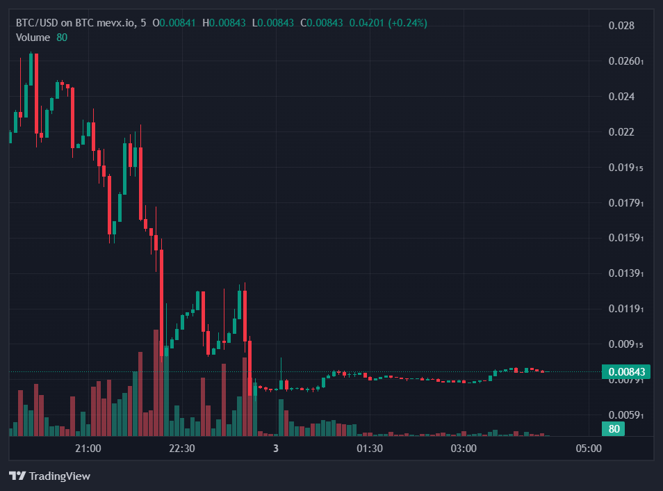Dựa trên dữ liệu gần đây từ sàn giao dịch MevX, BTC Memecoin đang thể hiện hiệu suất đáng chú ý, phản ánh sức hút mạnh mẽ của dự án, các chỉ số chính bao gồm: