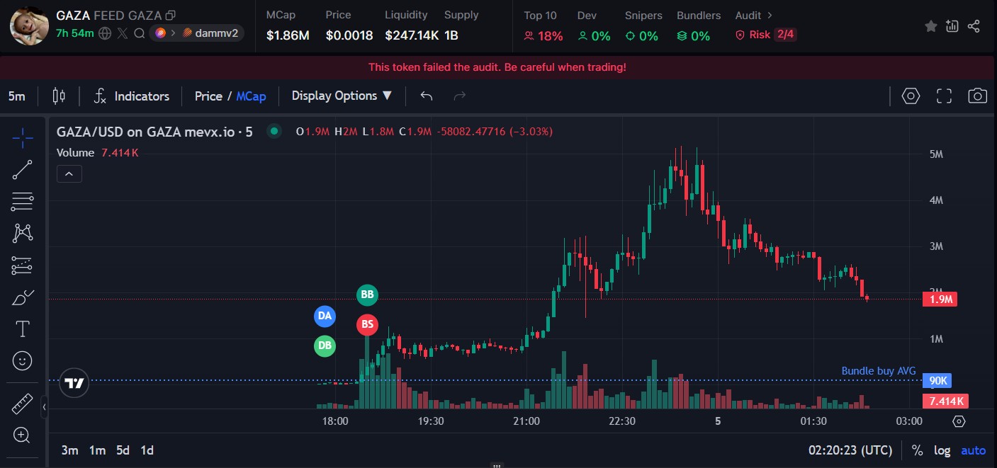 Dữ liệu từ mevx cho thấy $GAZA đang thu hút sự quan tâm lớn từ cộng đồng giao dịch: