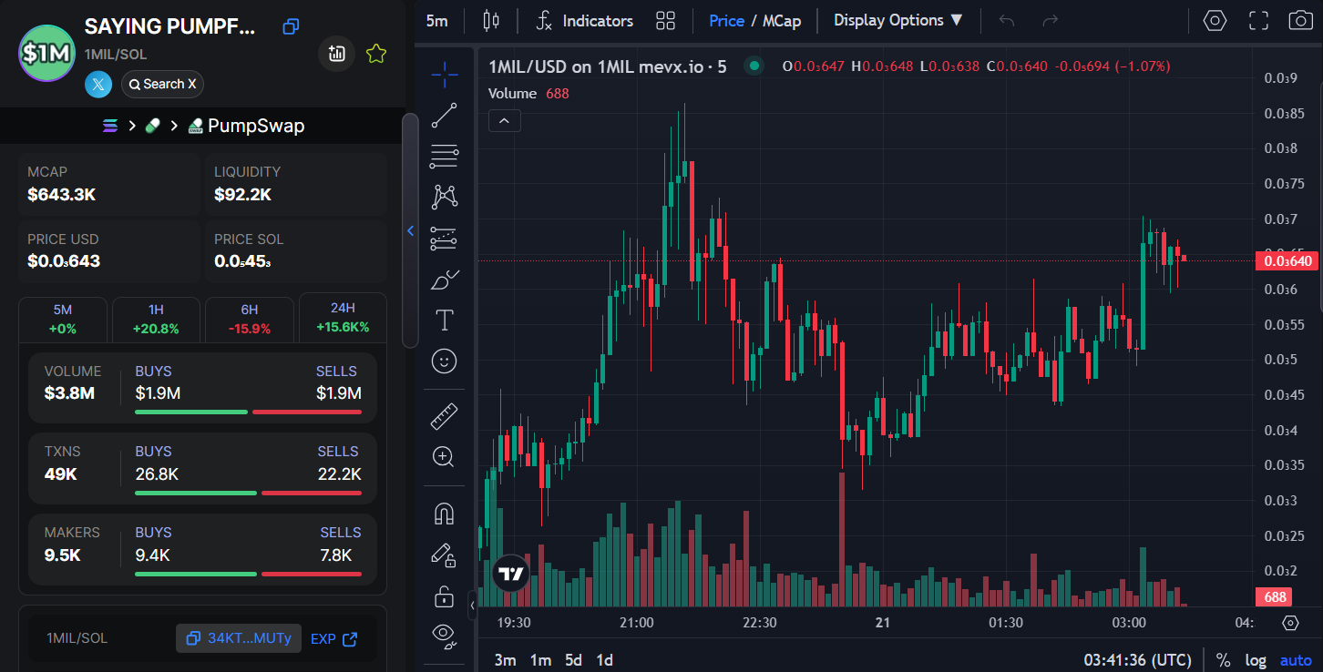 Dựa trên dữ liệu từ sàn MevX, $1MIL đang cho thấy một số dấu hiệu tăng trưởng đáng chú ý, dù vẫn còn biến động mạnh: