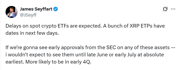 Vào ngày 23/5/2025, Ủy ban Chứng khoán và Giao dịch Hoa Kỳ (SEC) đã thông báo trì hoãn quyết định phê duyệt các quỹ ETF giao ngay liên quan đến XRP và Litecoin, khiến cộng đồng tiền điện tử tiếp tục chờ đợi. Động thái này không chỉ ảnh hưởng đến các nhà đầu tư mà còn làm dấy lên nhiều câu hỏi về tương lai của các quỹ ETF tiền điện tử tại Mỹ.