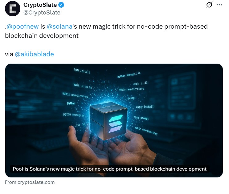 - Tạo dApp nhanh chóng: Từ một câu mô tả, Poof có thể tạo ra ứng dụng on-chain hoàn chỉnh chỉ trong vài phút, bao gồm cả giao diện và hợp đồng thông minh. Ví dụ, CryptoSlate đã thử tạo một ứng dụng newsreader với chức năng tipping trên Solana, dù gặp một số lỗi kỹ thuật trong quá trình thử nghiệm.