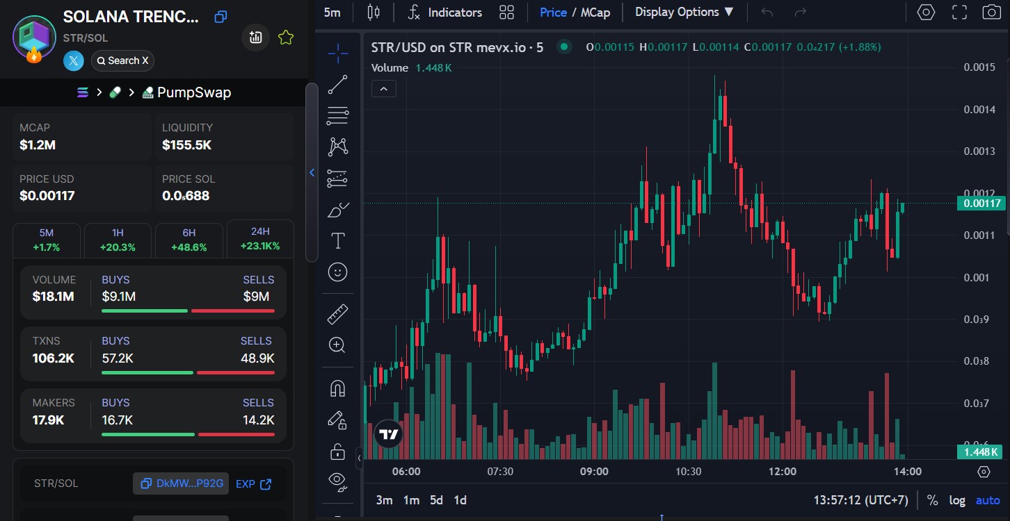 • Vốn hóa thị trường (Market Cap): $STR hiện đạt 1.2M USD, một con số ấn tượng cho một memecoin mới ra mắt.