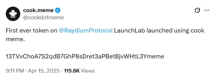 $TIME được phát hành bởi tài khoản @cookdotmeme trên X vào ngày 15/04/2025, nhanh chóng thu hút sự chú ý khi là token đầu tiên trên LaunchLab. Token này được triển khai bằng công cụ “cook meme” trên blockchain Solana, nổi tiếng với tốc độ giao dịch nhanh và chi phí thấp. Tuy nhiên, việc LaunchLab chưa chính thức ra mắt công khai tại thời điểm phát hành đã khiến cộng đồng đặt câu hỏi về tính minh bạch của dự án.