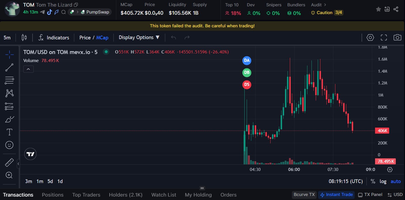 Trong thế giới tiền mã hóa, memecoin luôn là một hiện tượng đầy sức hút, và Tom The Lizard ($TOM) đang trở thành tâm điểm chú ý trên blockchain Solana. Với sự lan truyền mạnh mẽ trên mạng xã hội và tiềm năng tăng trưởng đáng kể, $TOM không chỉ là một memecoin thông thường mà còn là biểu tượng của sự sáng tạo và cộng đồng sôi động. Trong bài viết này, chúng ta sẽ khám phá nguồn gốc, câu chuyện, tiềm năng của $TOM, hiệu suất giao dịch trên nền tảng MevX, và cách bạn có thể đóng góp cho cộng đồng thông qua việc quyên góp tại PCRF.