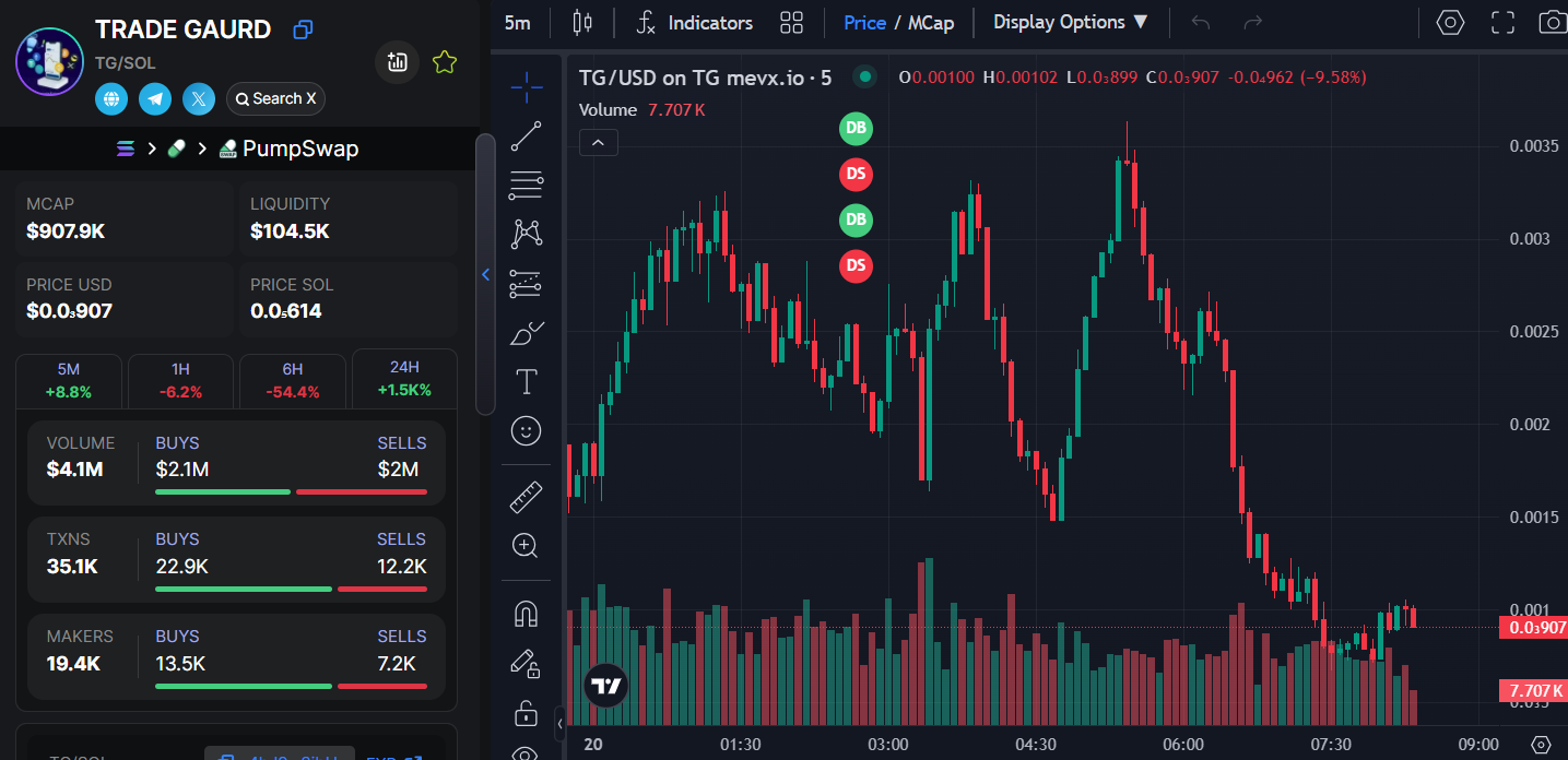 Tên gọi TradeGuard gợi ý một câu chuyện xoay quanh việc bảo vệ nhà giao dịch khỏi rủi ro trong thị trường tiền điện tử đầy biến động. TG dường như tập trung vào văn hóa meme và cộng đồng hơn là tiện ích thực tế, một đặc điểm phổ biến của các token trên Pump.fun.